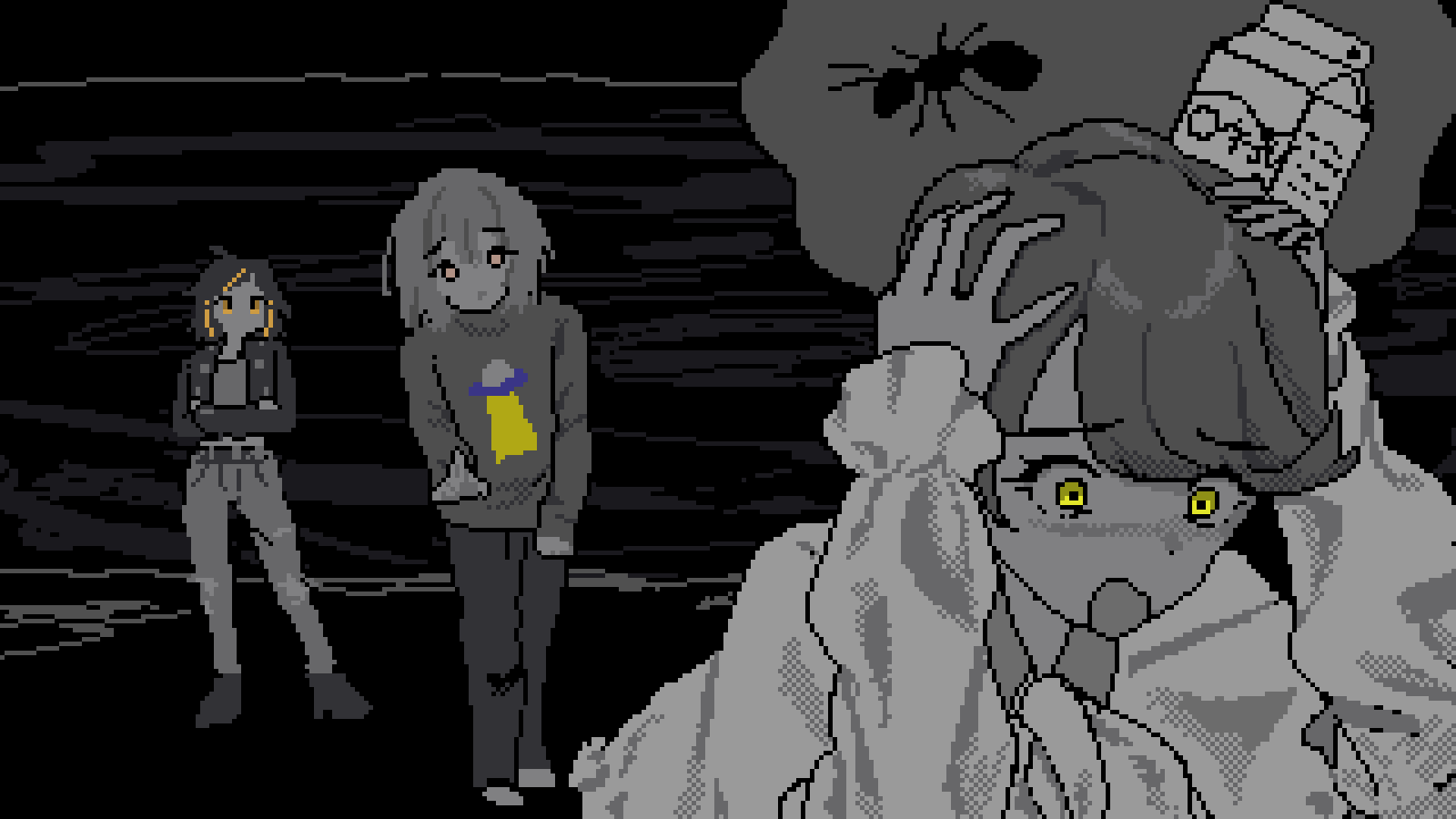 マルは大人しく、手芸や裁縫が好きな男の子です。趣味にも見た目にも、どことなく女性っぽい柔らかさがありますが、それもそのはず、マルはもともと女の子という設定でした。途中で男の子に変更したのは、ゲーム全体の男女比が女性に偏りすぎてしまったためですが、結果的にはマル本人にとっても良い判断だったかなと思います。キャラとしてユニークになったし、「アリの巣をおしっこで……する」というエピソードも、今思えば男の子のほうがはるかに説得力があると思います。精神的にも、物理的にも。
