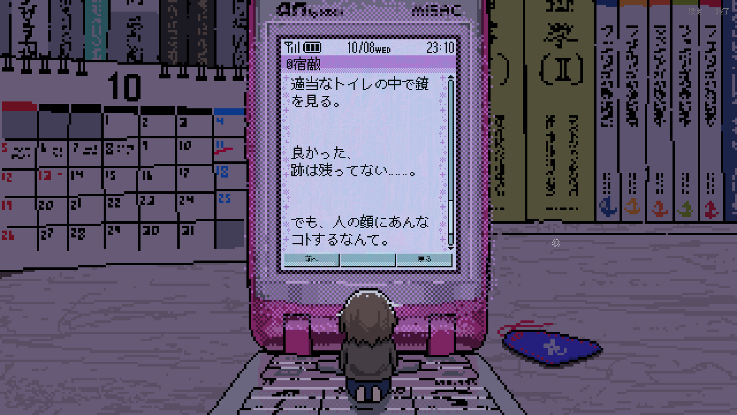 ケータイ小説はシモンが登場してから更新が止まりますが、ゲーム最終盤の7日目、なんとエンディングが公開されます。作者は誰なのか?少なくともシモンがひそかに生きている...という展開ではありません。日本語では、シモンによる文体と、エンディングの文体は微妙に異なっています。